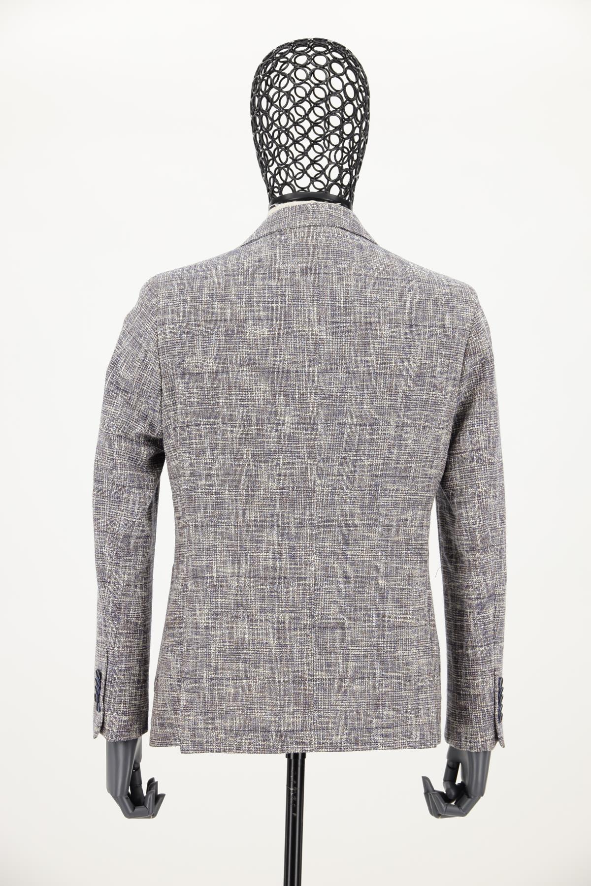 Düz renk, dokulu Ceket. Mono yaka, punto dikişli, düğme kapatmalı, çift yırtmaçlı, 3 adet dış cepli, 3 adet iç cepli.